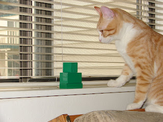 So, via my previous post about lovig the Irish, Spencer has been fed lots of Irish wisdom and "enthusiasm" for St. Patrick's Day. The other day he told me we need to decorate our house for St. Patrick's Day. I said, "we need lots of green, go see what you can find that's green and we'll put it all over the house." I proceeded to go and print off some shamrocks he could color and decorate and also some leprechauns, and we'd put 'em on the windows or something. Well my adorable red-headed Spencerrrrr went above and beyond. He found green colored blocks and placed them all over the house AND he assembled decorations using his green magnetics and then hung them from the ceiling fan in the kitchen.